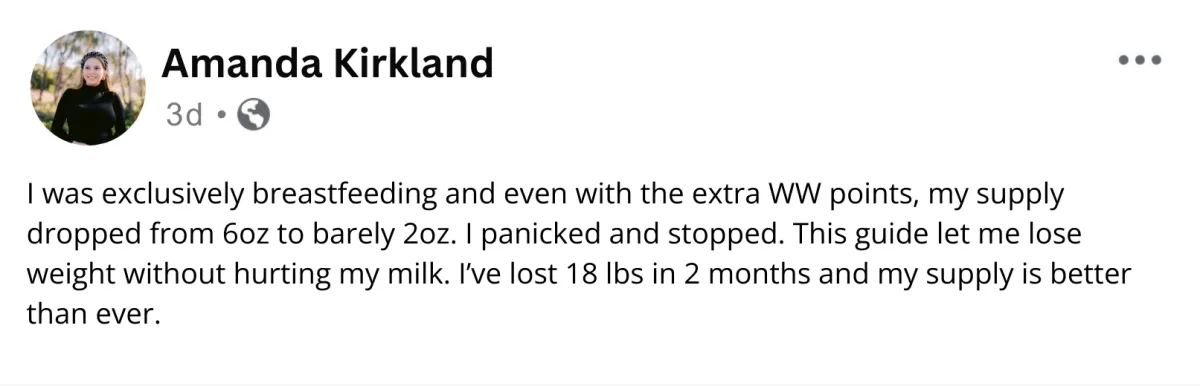 It’s based on cutting-edge lactation science + the real stories of moms who’ve lost 15–30 pounds while exclusively nursing.
